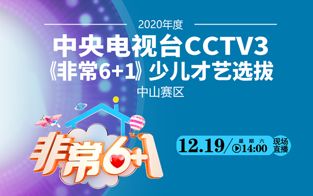 2020年度中央電視臺CCTV3《非常6+1》少兒才藝選拔中山賽區(qū)復(fù)賽將于12月19日下午2點(diǎn)舉行,中山日報(bào)報(bào)業(yè)集團(tuán)·中山網(wǎng)全程直播,敬請關(guān)注!