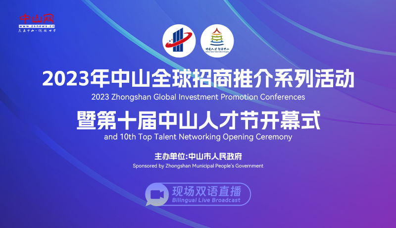 3月30日(星期四)上午10:00,2023年中山全球招商推介系列活動暨第十屆中山人才節(jié)開幕式將在中山溫泉賓館國際會議中心舉行,并同步在香港、澳門、馬來西亞等地設境外分會場。 本次活動以“投資中山 共贏未來”為主題。開幕式主要內容包括:發(fā)布中山市投資環(huán)境和人才工作宣傳片,推介中山投資營商環(huán)境,發(fā)布“十大主題產業(yè)園”政策和投資價值藍皮書,對2022年新認定總部企業(yè)、特聘專家代表、全球招商顧問和引才顧問進行聘任授牌,舉行重點項目簽約儀式和2023年海外專家南粵行暨中山市全球引才系列活動啟動儀式等,并邀請重點企業(yè)、優(yōu)秀人才和留學人員代表發(fā)言。 屆時,中山網、中山英文網將進行中英文雙語直播,敬請廣大網友關注。