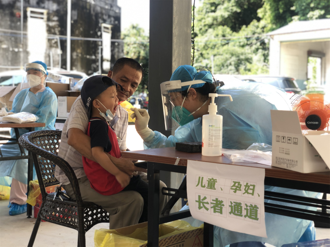 在今天天氣高溫的情況下,全體工作人員身穿防疫服和志愿者服,每個人都是汗流夾背的,可是他們不怕苦,不怕累,不怕流汗,不怕自己被感染的風險,感謝他們的真誠付出和無私奉獻! |
