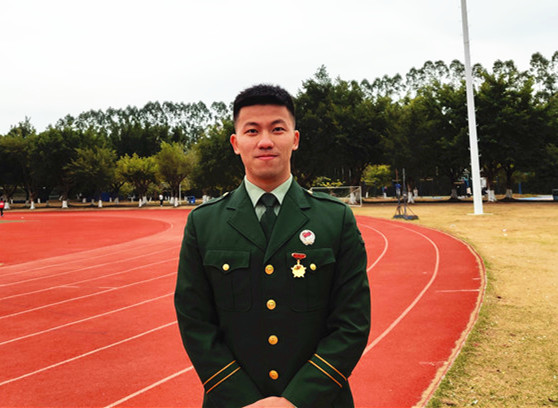 “小時(shí)候,我看過一部名為《烈火雄心》的電視劇,講的是消防員奮勇?lián)尵壬?,以濃煙考?yàn)斗志、以烈火洗煉人生的故事,那時(shí)我就對(duì)執(zhí)行任務(wù)類型的職業(yè)非常向往。再加上男生打小對(duì)飛機(jī)、槍支武器都有一種特殊的感覺,那時(shí)候就在想,有機(jī)會(huì)一定要去部隊(duì)歷練一番試試?!比尾敻嬖V記者,大二那年,他終于夢(mèng)圓軍營(yíng),服役于武警河南總隊(duì)某中隊(duì)。“3個(gè)月的新兵連非常充實(shí),隊(duì)列訓(xùn)練、拉練、長(zhǎng)途行軍......讓我印象深刻的是在行軍過程中,不管去到什么地方,只要一身軍裝在身,當(dāng)?shù)氐男∨笥讯紩?huì)朝我敬禮,老百姓也特別友善,讓我感到非常自豪,這種軍民魚水情讓我感覺非常好?!?/p> 服役期間,因表現(xiàn)突出,任伯聰被評(píng)為“優(yōu)秀義務(wù)兵”,于2019年退出現(xiàn)役。離開部隊(duì)后,他重返大學(xué)校園完成學(xué)業(yè),并加入了學(xué)校的國(guó)防教育服務(wù)中心,為學(xué)校的征兵宣傳工作奔走發(fā)聲。在校期間,任伯聰從未忘記自己曾經(jīng)是一名軍人?!拔覉?jiān)持每天長(zhǎng)跑10公里,練習(xí)單杠,也一直有按照之前部隊(duì)的訓(xùn)練標(biāo)準(zhǔn)來保持鍛煉?!?/p>  左一為任伯聰。