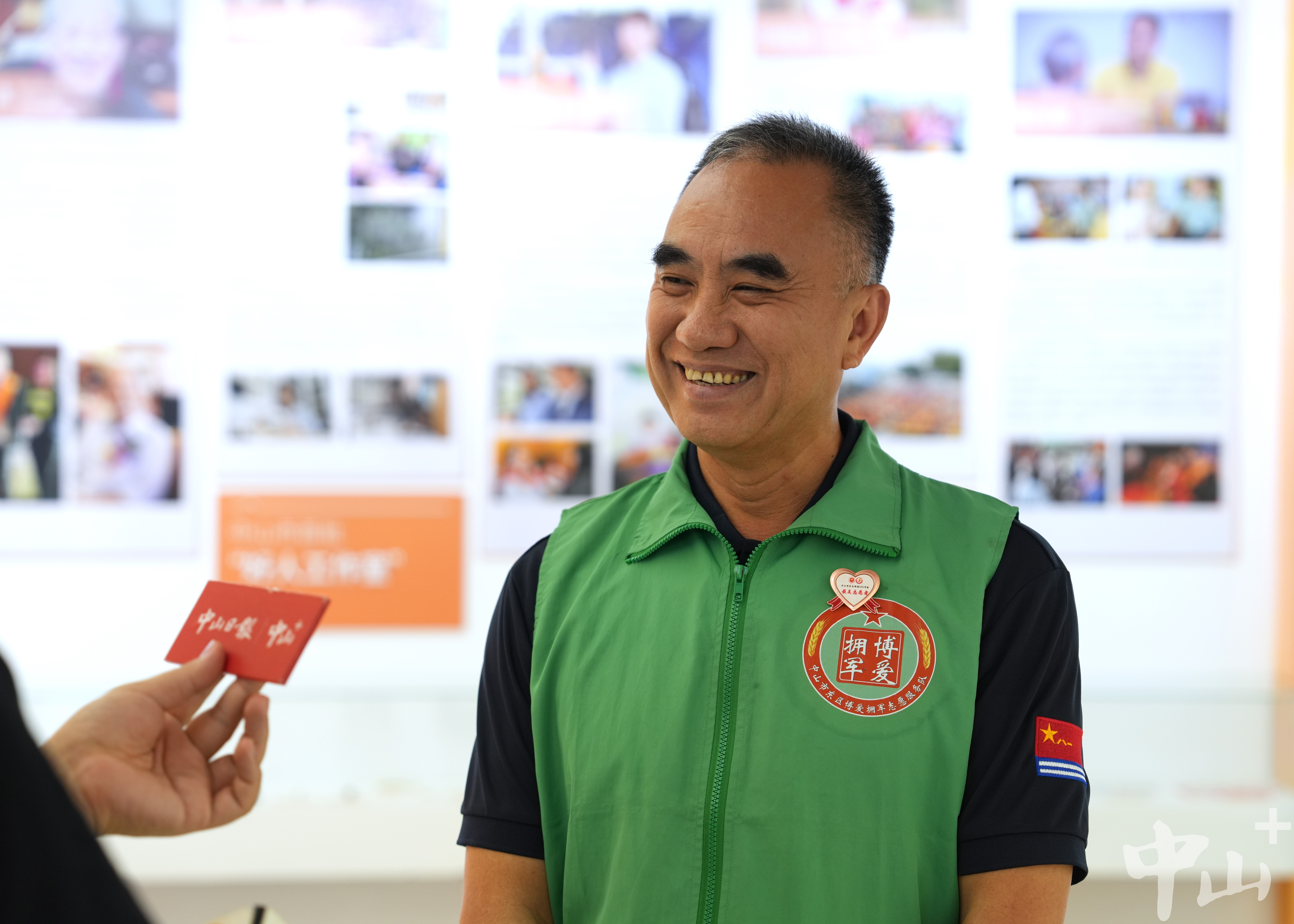 作為一名退伍軍人,李克有很多曾一起在戰(zhàn)場上出生入死的戰(zhàn)友,其中不乏已經(jīng)為國捐軀的烈士。自2007年起,他便自發(fā)組織尋找犧牲的中山籍戰(zhàn)友,先后6次帶隊前往廣西邊境的多個烈士陵園,成功尋到29名犧牲戰(zhàn)友信息,并將相關(guān)信息報送給中山市退役軍人事務(wù)局。 “我有一位戰(zhàn)友,寧愿把生的希望留給其他人,19歲不到就犧牲在戰(zhàn)場上。他們已經(jīng)離我們而去,更重要的是我們能為他們做些什么。所以逢年過節(jié)我都會看望他們的家人,把歡樂也帶給老人家?!崩羁苏f。 2016年,得知戰(zhàn)友的女兒患先天性心臟病,須進行心肺聯(lián)合移植手術(shù),李克立即帶頭捐款,并聯(lián)系政府相關(guān)部門和電視臺,通過媒體報道讓更多愛心人士關(guān)注到了這位困難老兵。在他的多方奔走下,社會各界紛紛伸出援助之手,募集醫(yī)藥費40余萬元,助戰(zhàn)友的女兒順利完成了手術(shù)。 牽頭成立志愿服務(wù)隊 延續(xù)志愿精神 作為一名有著30多年志愿服務(wù)經(jīng)歷的資深志愿者,李克的生活已經(jīng)與志愿分不開。他的身上始終有一抹綠色:在軍營,是守衛(wèi)國門的綠軍裝;在社區(qū),是服務(wù)群眾的綠馬甲。在人民群眾需要的地方,李克每次都沖在最前線。 “2020年疫情暴發(fā)時,很多人都響應(yīng)號召待在家里,我覺得作為一個打過仗的老兵,我總得站出來做點事?!睕]有過多考慮,李克第一時間加入到了志愿者隊伍中,并在社區(qū)堅守了整整60天。當(dāng)時防護物資匱乏,李克還自掏腰包托人在廣州購買了6萬元左右的防護物資,全部捐贈給了在一線抗疫的工作人員。 近年來,李克還積極捐資助學(xué)、支援災(zāi)區(qū)、扶危濟困,連續(xù)6年資助6名困難學(xué)生,為汕尾市陸河中學(xué)捐贈10套多媒體電腦設(shè)備,堅持參與無償獻血直到60歲。 2018年起,李克擔(dān)任文明城市巡查監(jiān)督員,奔走在街道各個路口、每條小巷,整理亂停亂放的共享單車,清理“牛皮癬”小廣告,保障街頭巷尾干凈衛(wèi)生。同一年,為更有組織地開展志愿活動,李克牽頭成立了一支以退役軍人為主導(dǎo)的東區(qū)博愛擁軍志愿服務(wù)隊,把戰(zhàn)友們凝聚在一起,共同為社會作貢獻。如今,這支志愿服務(wù)隊已從最初的8名成員,逐漸壯大至400多人,成為服務(wù)社會的一支生力軍。 講好好人故事,傳承紅色文化 4月19日上午,記者在“中山好人館”見到了正在擔(dān)任“輪值館長”的李克。從去年1月開始,他每個月都參與輪值,先后為140多場活動、1萬多名市民群眾義務(wù)講解博愛之城的凡人善舉、好人大愛。  正在中山好人館輪值的李克。記者 劉萬杰 攝