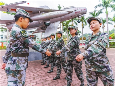 “向右看齊!向前看!現(xiàn)在教你們軍人隊(duì)列動(dòng)作中的脫帽戴帽要領(lǐng)……”3月21日下午,在中山市國防教育基地訓(xùn)練場上,一支七人訓(xùn)練小隊(duì)顯得格外特別,她們是今年上半年應(yīng)征入伍的中山女兵:梁晶、馮妙瑩、藍(lán)宇瑩、陳琬琪、溫黎嘉茵、劉燕彤、蘇汶詩。 她們都是00后女大學(xué)生,身著迷彩服,精神抖擻地在教官羅偉進(jìn)的帶領(lǐng)下有序而緊張地開展隊(duì)列訓(xùn)練?!捌叨浣鸹ā鼻酀赡鄣哪樕蠈憹M了對軍旅生活的向往和期待。她們將通過幾天的役前教育訓(xùn)練,邁出軍旅生活第一步。 ■五次報(bào)名應(yīng)征終圓夢 七朵金花中,沙溪鎮(zhèn)占據(jù)兩席名額,她們分別是藍(lán)宇瑩和劉燕彤。沙溪鎮(zhèn)武裝部工作人員劉偉立說:“從歷年來看,這次是我們鎮(zhèn)出女兵人數(shù)最多的一次。其中,龍聚環(huán)村民小組更是出兵大戶,幾乎每年都有男女兵從這里出。” 身高1.7米的劉燕彤就來自沙溪鎮(zhèn)樂群村(龍聚環(huán)村民小組),就讀于廣東海洋大學(xué),是一名大二學(xué)生。“我記憶中每次村里有人當(dāng)兵入伍,都會(huì)舉行隆重的送兵儀式,整個(gè)村子鑼鼓喧天鞭炮齊鳴,還有舞獅表演助陣,好熱鬧。很小的時(shí)候我就覺得當(dāng)兵很威風(fēng)很光榮,在我心里也就埋下了要當(dāng)兵的種子。”劉燕彤說:“我對部隊(duì)生活充滿了期待,進(jìn)入部隊(duì)后我希望自己能考上軍校留在部隊(duì)長期發(fā)展?!?/p> 藍(lán)宇瑩來自沙溪鎮(zhèn)匯源社區(qū),就讀于廣東技術(shù)師范大學(xué),是一名大三學(xué)生。她曾在網(wǎng)上報(bào)名應(yīng)征了5次,可見其參軍入伍決心之大。“我從小就很崇拜軍人,從小學(xué)一直到大學(xué)都是學(xué)校國旗護(hù)衛(wèi)隊(duì)的隊(duì)員。”藍(lán)宇瑩表示,幸運(yùn)的是今年3月份,自己終于圓夢軍營即將前往某戰(zhàn)區(qū)海軍服役。 藍(lán)宇瑩的母親錢梅香表示:“我非常支持女兒的決定,感覺入伍對女生來說是一種很好的鍛煉。如果有機(jī)會(huì),我還想讓小兒子上大學(xué)后也進(jìn)入部隊(duì)參軍報(bào)國,向姐姐學(xué)習(xí)?!?/p> ■對軍營生活充滿期待 七朵金花中,來自南朗街道下沙村的馮妙瑩就讀于廣東醫(yī)科大學(xué),今年6月份大學(xué)畢業(yè)?!拔覀冏黾议L的就是希望她入伍后好好干,加油努力。”馮妙瑩的父親不善言辭,非常支持女兒的從軍決定,“我年輕時(shí)也想當(dāng)兵,但身體條件不合格,錯(cuò)失了機(jī)會(huì)。” “我大一就加入了學(xué)校國旗護(hù)衛(wèi)隊(duì),通過日復(fù)一日的隊(duì)列訓(xùn)練,開始向往激情如火的軍營生活?!瘪T妙瑩告訴記者,“對即將到來的部隊(duì)生活,既期待又有點(diǎn)擔(dān)心。擔(dān)心去到一個(gè)陌生的環(huán)境會(huì)不適應(yīng),但既然選擇了這條路,我一定會(huì)克服困難,堅(jiān)持下去,爭取留在部隊(duì)發(fā)展,早日成為一名優(yōu)秀軍人?!?/p> 來自民眾街道的梁晶就讀于南華大學(xué),今年6月即將大學(xué)畢業(yè)。她剛進(jìn)入大一就提交了入黨申請書,2022年正式成為一名共產(chǎn)黨員。梁晶說:“2021年河南特大暴雨期間,通過新聞媒體看到中國軍人逆流而上,連夜出征轉(zhuǎn)移群眾的場景讓我深受感動(dòng)。那時(shí)起,我就萌生了參軍的想法?!毙疫\(yùn)的是,她今年終于圓夢軍營,她表示:“面對未知的軍營生活,我已經(jīng)作好了心理準(zhǔn)備。進(jìn)入部隊(duì)后,我一定會(huì)好好適應(yīng),有信心能在部隊(duì)干好。” 臨近傍晚,一天的訓(xùn)練就要結(jié)束了,中山市國防教育基地門口上方一條寫著“保家衛(wèi)國終不悔,綠色軍營獻(xiàn)青春”的紅色橫幅迎風(fēng)招展,不遠(yuǎn)處的軍營生活正等著中山這“七朵金花”的到來,她們也在憧憬著…… 記者 張倩 ◆編輯:龍慧◆二審:鄭沛鋒◆三審:周亞平 |