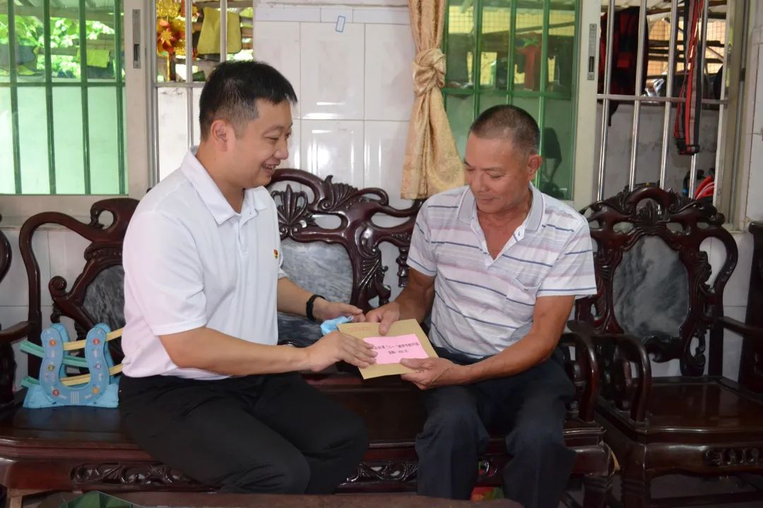 “生活上有什么困難?”“家里近況可好?”當(dāng)天下午,黃聲群一行來到陳炎根家中,為他送上慰問金,認真傾聽其實際困難和生活需求,感謝根叔為黨和人民所作出的貢獻。