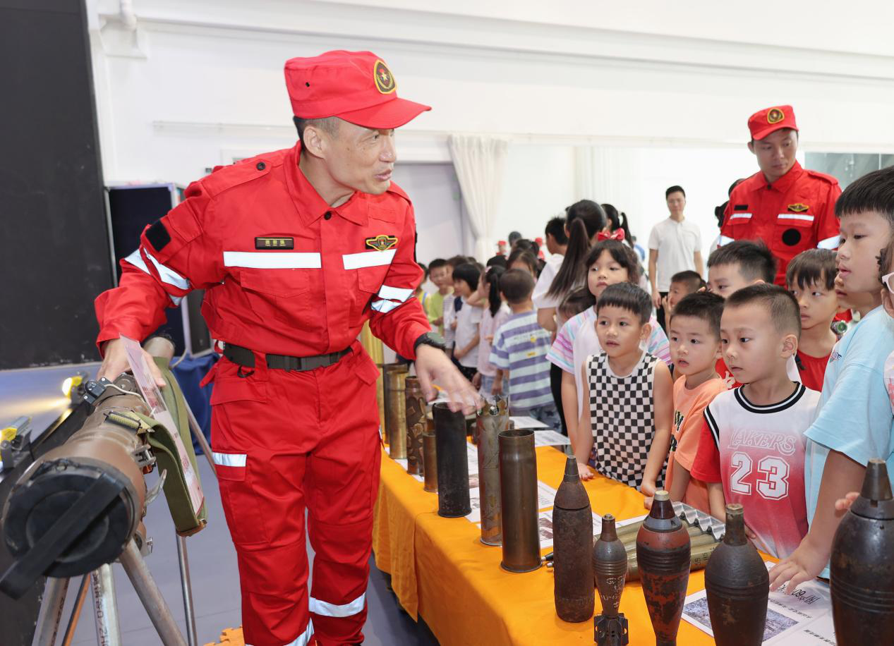 7月24日上午,中山市擁軍支前紅旗服務(wù)隊(duì)在南區(qū)街道環(huán)城社區(qū)暑期公益夏令營開營儀式上開展安全教育及國防教育,現(xiàn)場(chǎng)共吸引70余名社區(qū)兒童、家長以及志愿者參與。  暑期“安全第一課”。