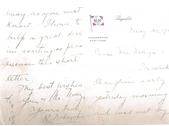 1916年5月宋慶齡告別梅屋夫婦回滬后以中山瓊英的筆名致梅屋夫人的函