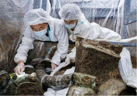 天道酬勤,1986年7月至8月,三星堆遺址一、二號祭祀坑被考古工作者發(fā)現(xiàn),大量青銅器、玉器、金器等珍貴文物出土,“一醒驚天下”。