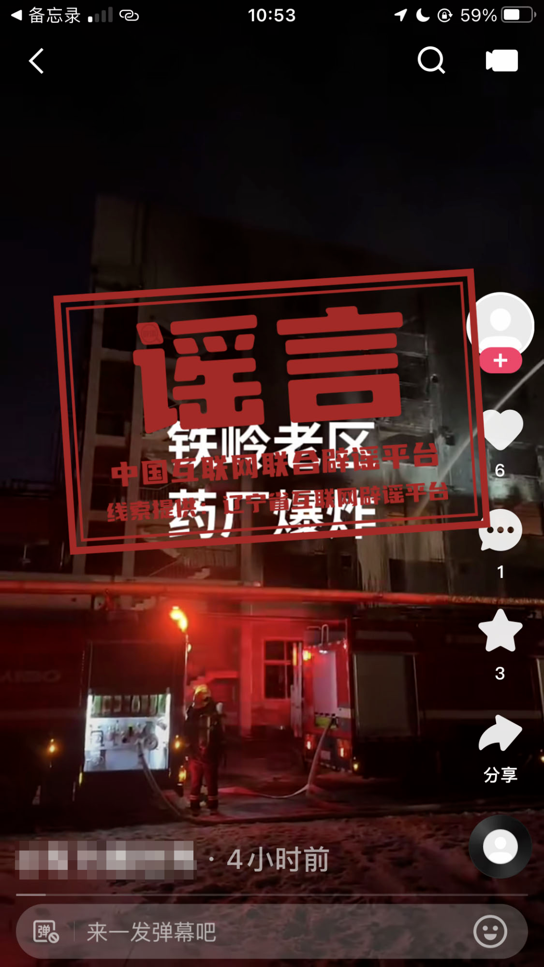 真相:近日,一網(wǎng)民在短視頻平臺發(fā)布信息稱“鐵嶺市銀州區(qū)某藥廠發(fā)生爆炸”,引發(fā)關(guān)注。經(jīng)遼寧省鐵嶺市公安局新城分局調(diào)查核實,某工廠當(dāng)日下午一車間起火,相關(guān)部門迅速到場妥善處置,未發(fā)生爆炸。網(wǎng)民常某在未經(jīng)核實的情況下,將不實信息發(fā)布至網(wǎng)絡(luò)平臺,造成不良社會影響。目前,公安機(jī)關(guān)已依法對常某予以行政處罰。(來源:@平安鐵嶺)
