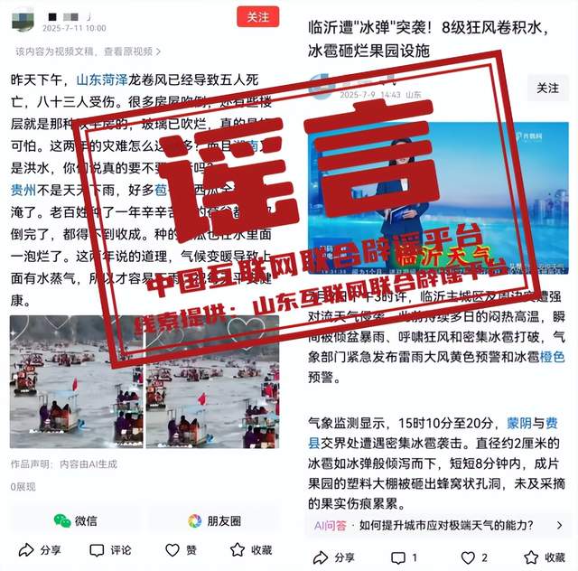 真相:7月11日,有個別自媒體賬號發(fā)布信息稱“昨天下午,山東菏澤龍卷風已經(jīng)導致五人死亡,八十三人受傷”并配發(fā)相關圖片,引發(fā)關注。經(jīng)核實查證,菏澤市7月10日并未發(fā)生龍卷風,網(wǎng)傳消息系謠言。此外,另一自媒體賬號近日發(fā)布“臨沂遭‘冰彈’突襲!8級狂風卷積水,冰雹砸爛果園設施”等信息。經(jīng)向臨沂市氣象部門核實,近期臨沂市未發(fā)生大風冰雹天氣,上述信息與實際情況不符,確為謠言。請廣大網(wǎng)民以氣象部門發(fā)布的信息為準,勿輕信、勿傳播非正規(guī)來源或未經(jīng)證實的信息。(來源:山東省互聯(lián)網(wǎng)違法和不良信息舉報中心)