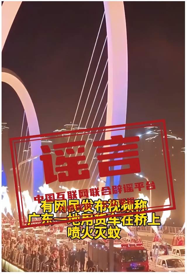 真相:近日,有網(wǎng)民在社交網(wǎng)站發(fā)布視頻,并配文字稱“廣東一地用貨車在橋上噴火滅蚊”,引發(fā)關(guān)注。經(jīng)有關(guān)部門核實,該視頻實為8月24日外省某地的噴火巡游表演,與廣東及滅蚊無關(guān)。(來源:@南方日報)