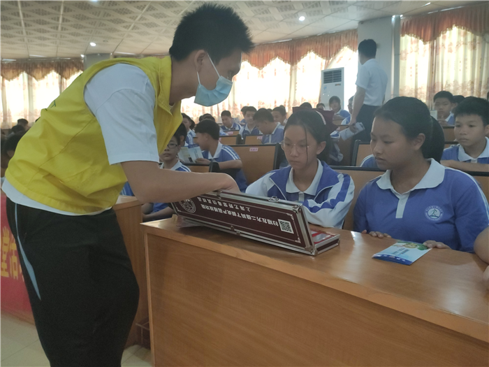 活動(dòng)現(xiàn)場,鎮(zhèn)禁毒辦專干和禁毒社工通過派發(fā)宣傳單張、介紹仿真毒品模型、講解禁毒PPT、口號宣誓、有獎(jiǎng)問答等方式向?qū)W生們普及禁毒防毒知識,力求從根源上打造無毒校園。