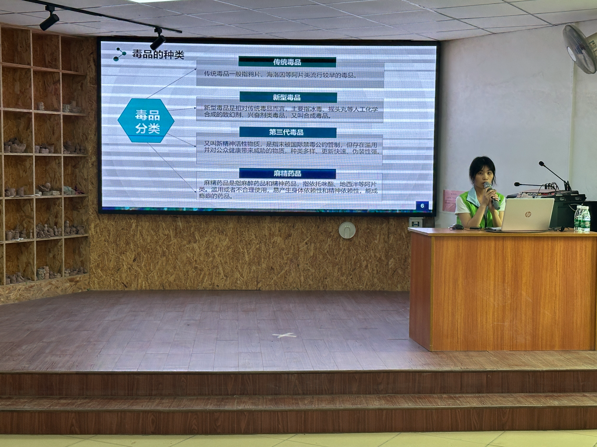 活動(dòng)現(xiàn)場(chǎng),禁毒社工通過發(fā)放宣傳資料、講解禁毒知識(shí)、介紹新型毒品類型等方式,帶學(xué)生們深入了解到毒品的種類以及有關(guān)知識(shí)點(diǎn)。用通俗易懂的語(yǔ)言,結(jié)合真實(shí)案例,提醒同學(xué)們不要因?yàn)楹闷嫘膶?dǎo)致誤入歧途,學(xué)會(huì)抵制毒品誘惑。同時(shí),禁毒社工倡導(dǎo)學(xué)生們要時(shí)刻牢記禁毒理念,學(xué)會(huì)真愛生命。在互動(dòng)環(huán)節(jié)上,學(xué)生們積極參與回答問題,現(xiàn)場(chǎng)氣氛熱烈非凡,學(xué)生們更進(jìn)一步了解到毒品知識(shí)。最后,社工帶領(lǐng)大家一起宣誓禁毒誓詞,為他們的青春之路筑牢禁毒防線。