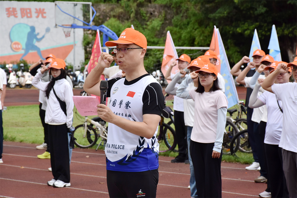 本活動(dòng)分為三個(gè)流程:首先,由阜沙中學(xué)學(xué)生代表宣讀禁毒倡議書。擲地有聲的禁毒倡議,聲聲入耳的禁毒理念,鞭策著廣大群眾始終銘記銷煙歷史,傳承禁毒使命。緊接著,鎮(zhèn)領(lǐng)導(dǎo)為熱心企業(yè)、單位授予牌匾,感謝社會(huì)各界力量參與禁毒工作,為阜沙禁毒貢獻(xiàn)自己的力量。最后,張濤代表鎮(zhèn)黨委政府致辭。他強(qiáng)調(diào),毒品預(yù)防教育在禁毒工作中起重要作用,要始終堅(jiān)持預(yù)防為主,將“不能、不敢、不愿吸販毒”的無毒理念扎根人民群眾心中,從源頭、從思想上根治毒品問題。他指出,禁毒工作是一場(chǎng)馬拉松,希望大家燃放激情,保持耐力,積極投身禁毒工作,帶領(lǐng)廣大人民群眾共同抵制毒品,建設(shè)和諧穩(wěn)定、綠美新阜沙。隨后,張濤帶領(lǐng)所有人員宣誓,一聲聲鏗鏘有力的誓詞,讓禁絕毒品的使命初心永銘心中,讓腳下的步伐更加堅(jiān)定有力。伴隨著出發(fā)信號(hào)響起,騎行隊(duì)伍以車輪為畫筆,在夏日畫卷中勾勒出“健康人生,綠色無毒”的亮麗底色。