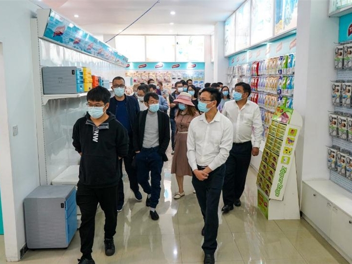 4月25日,中山市互聯(lián)網(wǎng)行業(yè)黨委、中山市網(wǎng)絡(luò)文化協(xié)會(huì)一行赴沙溪鎮(zhèn)調(diào)研,現(xiàn)場(chǎng)參觀直播帶貨,了解直播電商業(yè)務(wù)及企業(yè)發(fā)展情況。